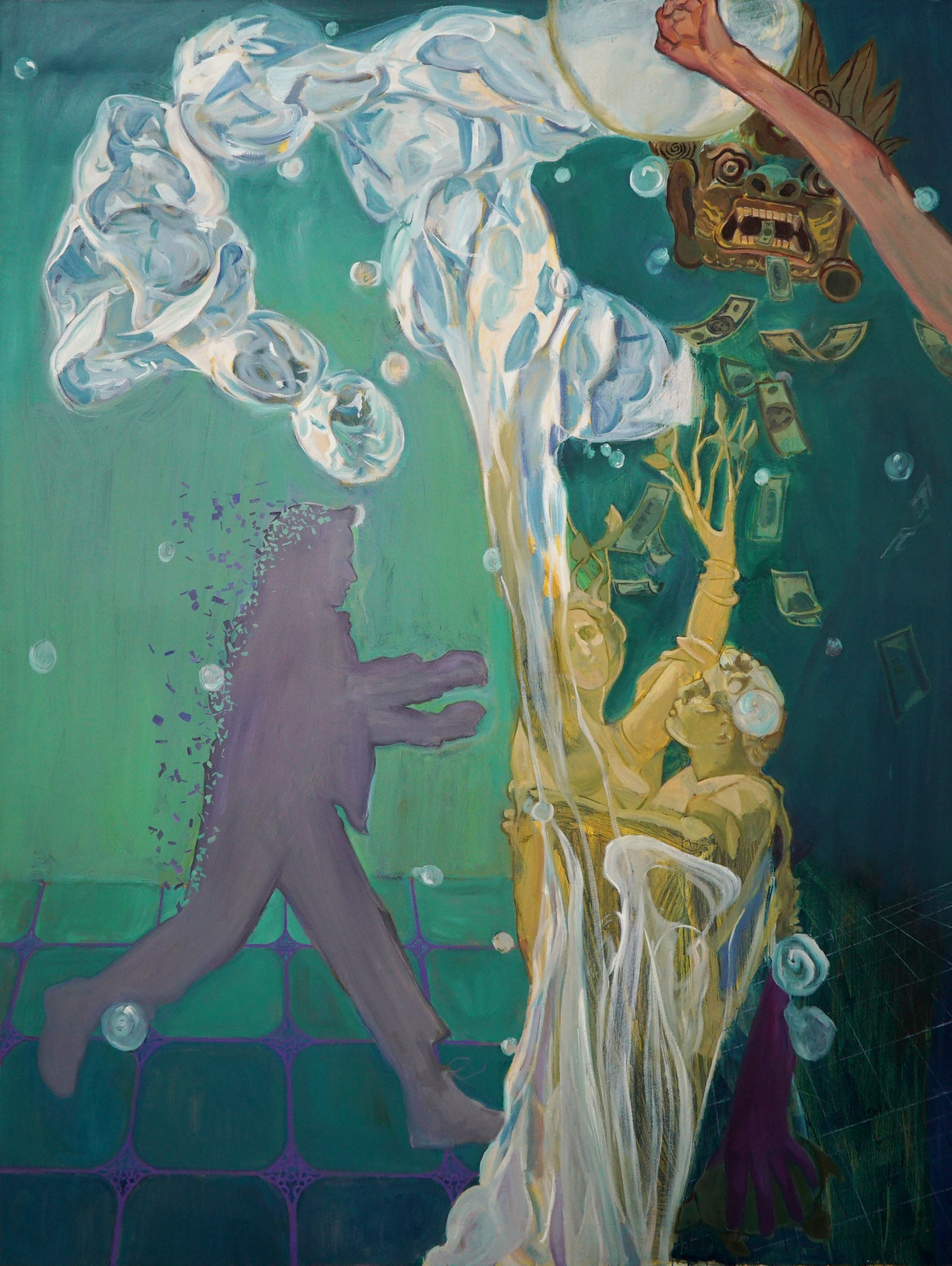研究圖像與語言符號中的內部感性經驗,以主觀視角,營造多維度的視覺結構,通過“寓言詩”的繪畫方式表達對生存狀況、精神訴求的隱喻。在畫面中,場景與現實不再發生直接關聯,也不具有明確的意義指涉,它們的存在,是含混的詩意,在意義的縫隙中斷裂重構。