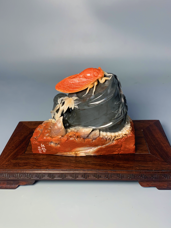 擅長(zhǎng)瓜果草蟲及擺件印章等題材,善于利用壽山石天然紋理與彩色布局取巧。在繼承傳統(tǒng)技藝的基礎(chǔ)上不斷創(chuàng)新,形成自己獨(dú)特的藝術(shù)風(fēng)格。作品在國(guó)內(nèi)屢獲國(guó)家級(jí)及省市級(jí)工藝美術(shù)大獎(jiǎng)。作品《秋之韻》、《甜蜜家園》、《福從手中來(lái)》收藏于中國(guó)國(guó)家博物館,作品《春意盎然》、《平安富足》、《居高聲自遠(yuǎn)》收藏于福建省工藝美術(shù)珍品館,作品《一鳴驚人》收藏于中國(guó)壽山石館。