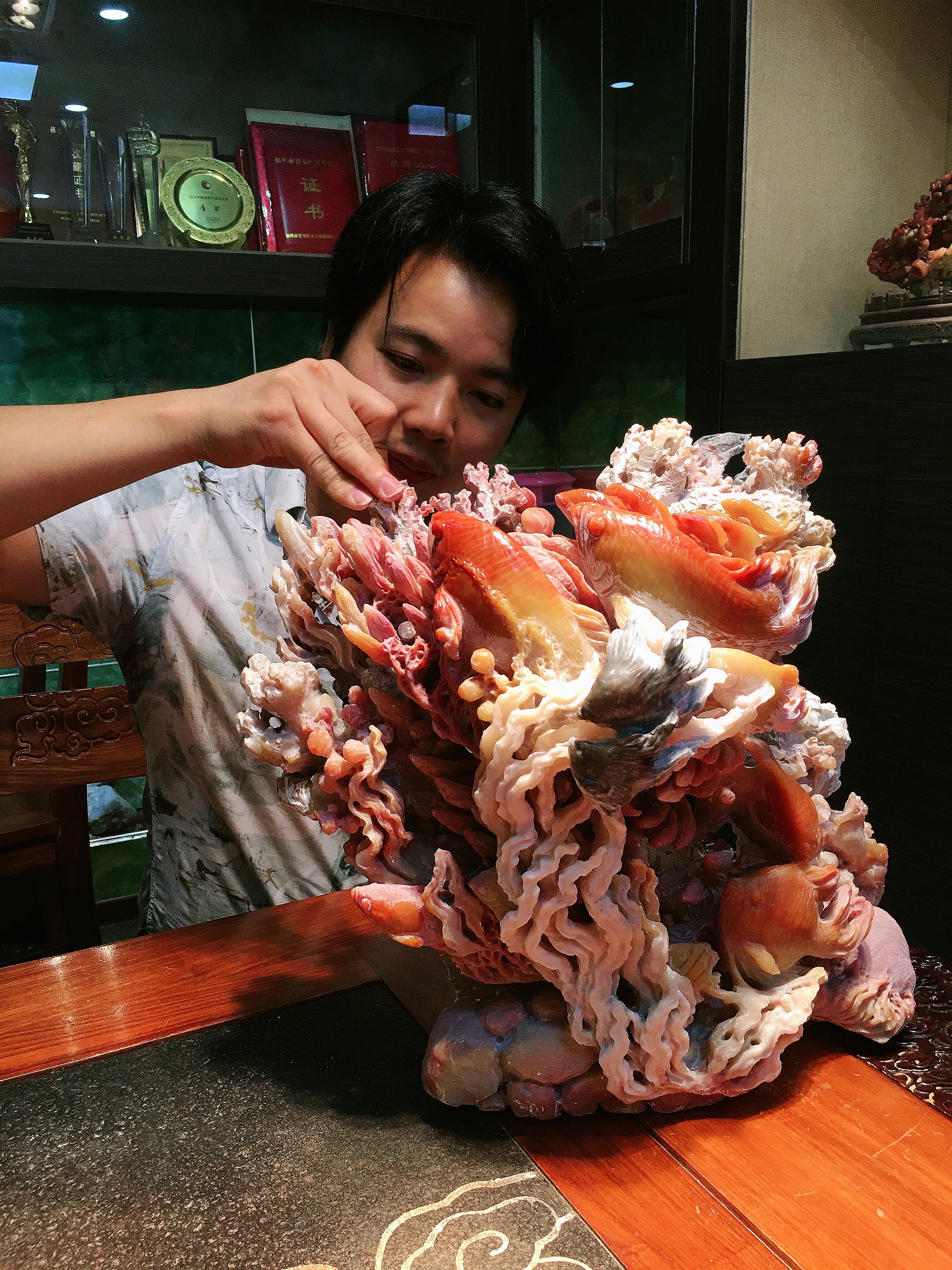 朱志雄,2019年06月畢業于福建師范大學藝術設計本科學歷,現為福建省工藝美術名人、一級/高級技師。2020年至2021年先后榮獲“福建省金牌工人稱號”、"莆田市工藝美術大師"、"福州市壽山石雕技藝名師"“福州市技能大師工作室”、"福州市晉安區優秀人才"、“福州市晉安區技術能手”、“第三屆壽山石雕刻十大新秀”等榮譽稱號。《蔚藍的家園》、《金玉滿堂》等作品多次榮獲“爭艷杯”、“百花獎”金獎,多件作品被中國美術館、中國工藝美術館、福建省美術館收藏。 2018年、2020年參加省、市職業技能競賽,分別獲得優異成績,長期從事壽山石雕刻,先后發表多篇論文和個人專著,擁有多份版權專利,多份外觀專利。