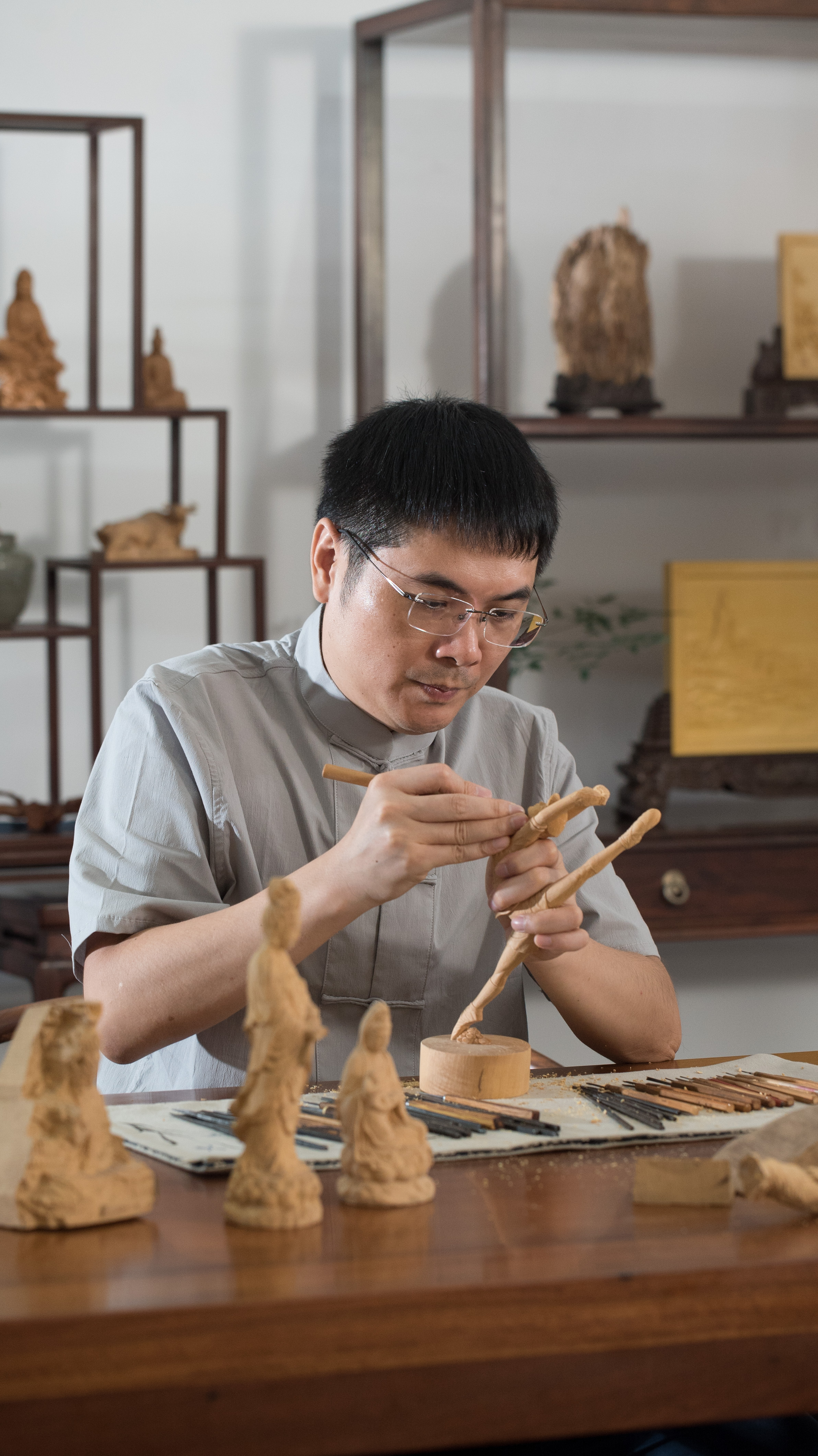林建軍,輕工大國工匠,國家非遺莆田木雕代表性傳承人、福建省工藝美術大師、79年出生于莆田,95年開始學習木雕,以精微透雕技藝見長;“莆作”木雕品牌創始人、藏雲堂”藝術雕刻品牌創始,“紋雕”技藝創始人、榮獲全國五一勞動獎章,文旅部授予全國非物質文化遺產保護先進個人,共青團中央授予第九屆全國青年致富帶頭人,福建省“八閩工匠年度人物”,福建省五四青年獎章,莆田市十佳工匠之星;獲得2018中國文聯青年扶持計劃,2019國家藝術基金。榮獲國家級金銀獎30多項。2017年代表莆田木雕攜13件套作品入選廈門金磚會晤福建非物質文化遺產展,現場為習近平總書記和俄羅斯總統普京展示莆田木雕技藝。