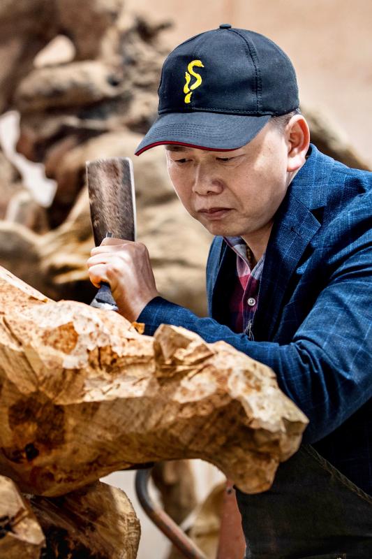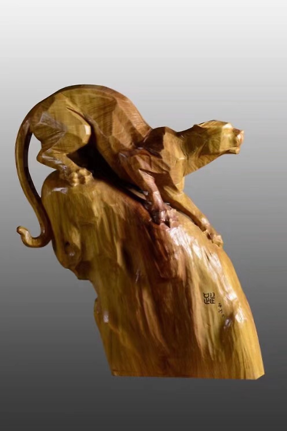 從藝以來,在木根雕雕刻技藝和藝術創作上不斷追求創新和擴展,尤其擅長雕刻“豹子”等動物以及大型木根雕作品。獨創的一套豹子雕刻技法,在我省乃至全國木雕行業處于領先地位,被業界譽為“豹王”。在大型木根雕創作上,綜合運用圓雕、浮雕和透雕等技法,創作一系列承載歷史文化和時代精神的作品,以表達家國情懷,謳歌偉大時代。