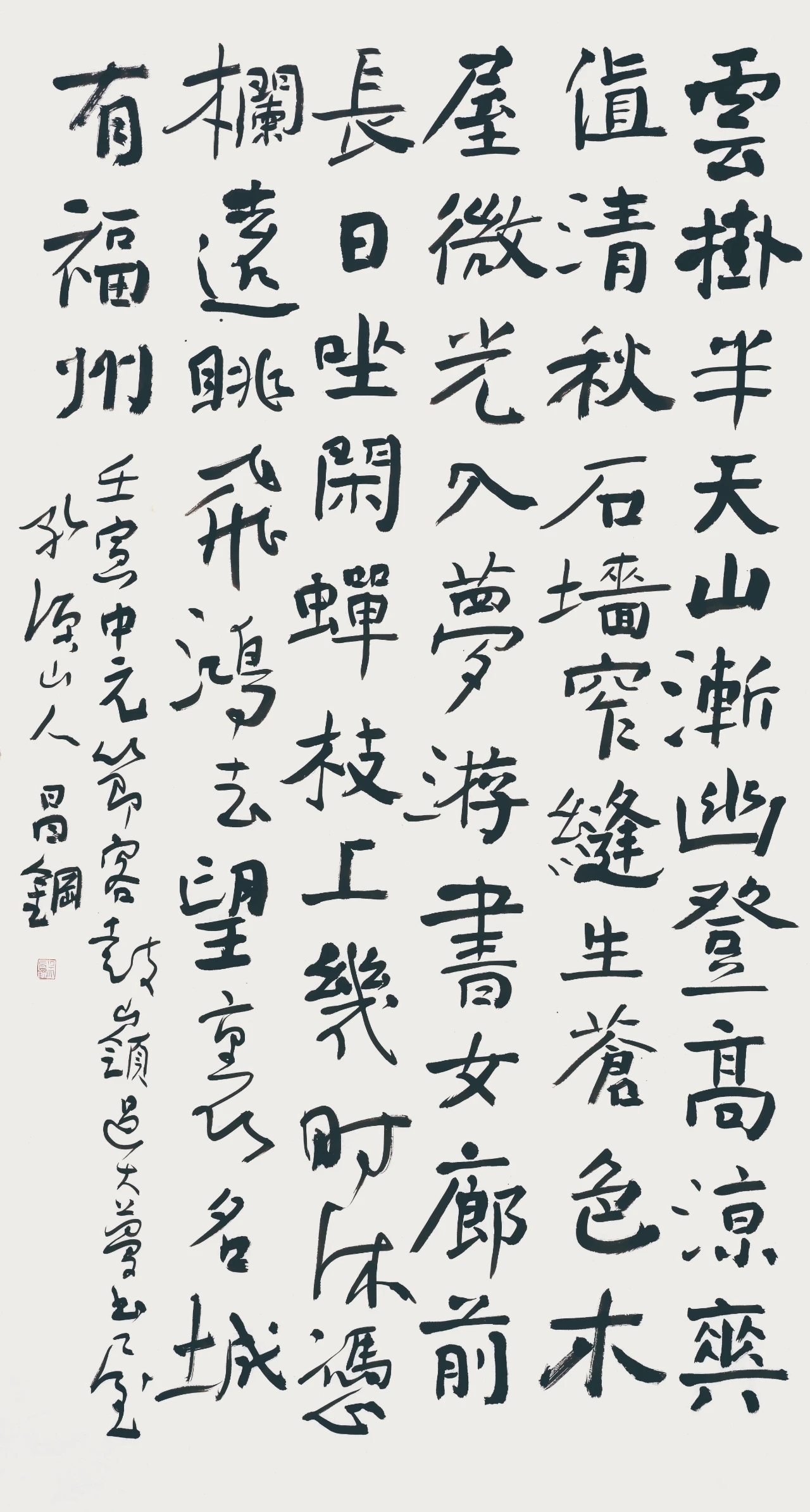 吳昌鋼是一位為數不多的兼善詩書畫印的藝術家。早在上世紀八、九十年代就活躍于全國書壇,已故的中央文史館老前輩蕭勞先生曾贊其曰“軍中杜書記,年少已知名”,潘主蘭先生亦稱道“突起吾州有異軍”。省外還有人先后在《美術報》等報刊上發表《當代書法創作的形態特征—主題創作》文章,稱福建吳昌鋼是影響當時書壇創作形式的代表之一。