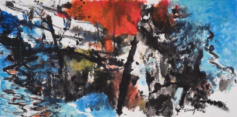 “故鄉的自然,總能給我以力量,支撐我持續創作,并不斷突破既有邊界,形成新的認知,就像一次次從故鄉出發又回到故鄉。”中國美術家協會理事、中央美術學院教授、中國美協綜合材料繪畫藝委會秘書長唐承華介紹了此次參展作品的創作理念。唐承華說,春節期間,他回到家鄉,在不同的環境中、在日常的生活中窺見真實的自我。在家鄉,他看到很多令人鼓舞的生活和意志。他所感受到的風景,蘊含著家鄉獨有的詩意,讓他思考如何用藝術的語言去表達,讓他開始對自己的人生有一個系統的思考,自我認識慢慢開始深刻起來。這次在福清創作的“故鄉”系列作品,是他藝術生涯中的一次最重要的成長與突破。
