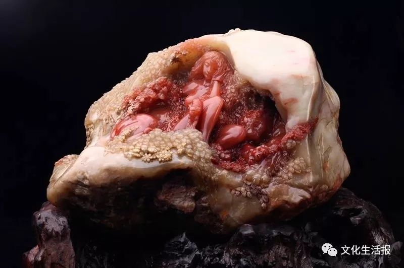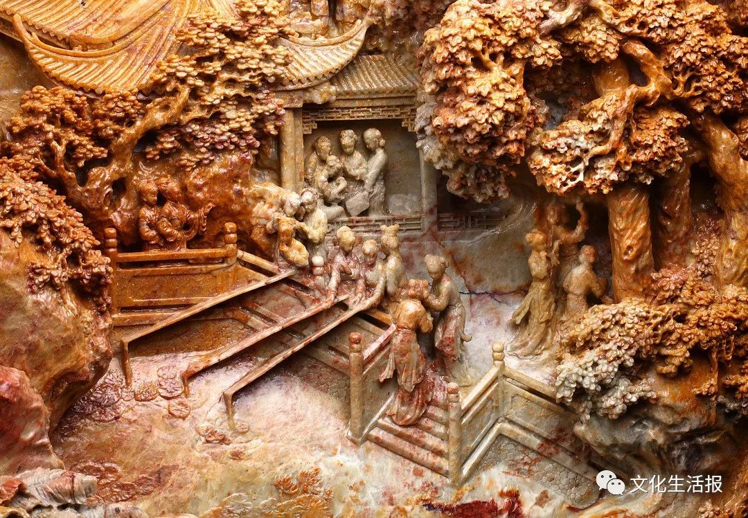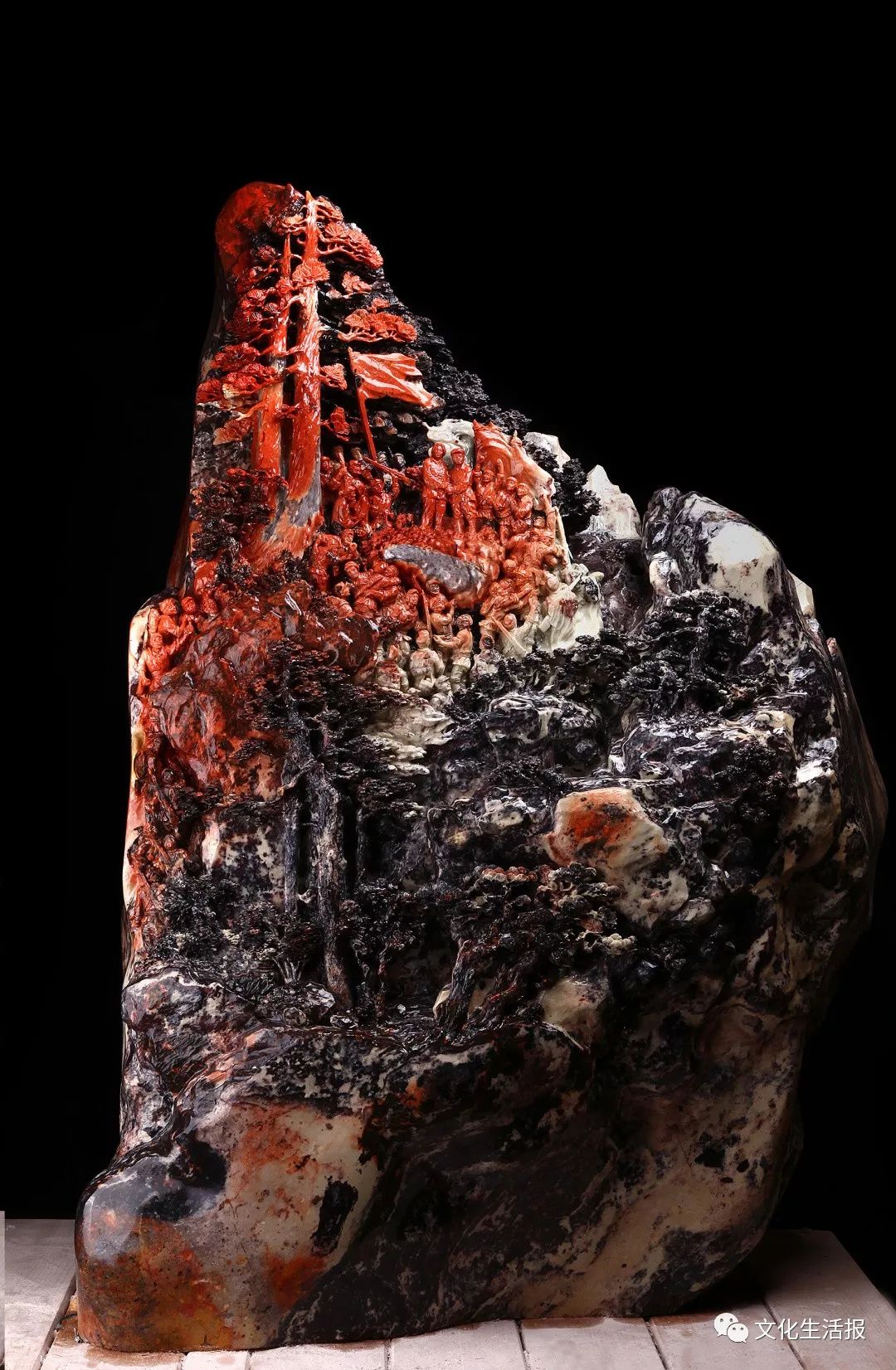 這件大作,是對壽山石雕刻藝術的一次拓展與創造,開拓了過去三百年來的具象與細作之路,雕出了宏偉氣象。此件作品前后耗時兩年有余,是林飛先生的心血之作,也是他對壽山石藝術長期思考探索的智慧呈現,作品很充分地展現出林飛先生高超的雕刻工藝水平,更展現出林飛先生在造型與結構上的塑造能力,展現出他的審美眼光和文化素養。“天一半,人一半”,這是他對壽山石藝術謙遜的獨特見解,而這件作品實是對他獨特見解的最好詮釋。