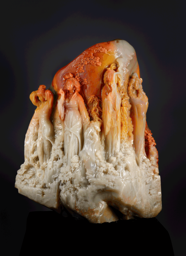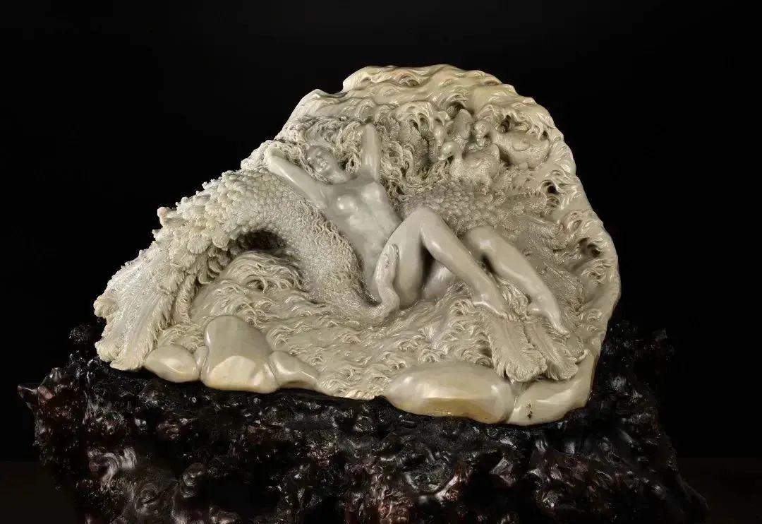 雕刻伊始,已將生命的靈性與自然,與美人,與故事揉在一起,無(wú)心狀物,有心寫境,隨心而致,石便生出美人,構(gòu)成了故事,空靈妙有,蘊(yùn)藉生香,意象盎然。