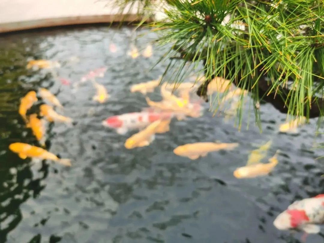 若花未醉人,人卻因何醉?推門入院,一樹櫻花,共譜春曲,裊裊婷婷;一池錦鯉,滑著尾巴,悠悠哉哉。池邊小樹,青磚小路,幾個(gè)造像不一雕塑擺件,不張揚(yáng),卻足夠個(gè)性。
