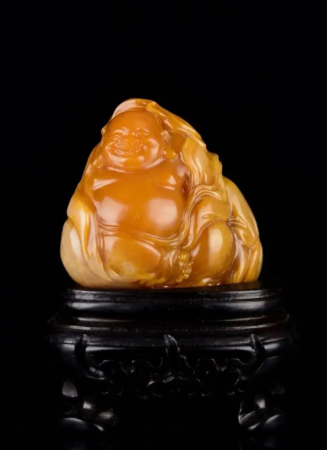 “大肚能容,容天下難容之事;開口便笑,笑世上可笑之人?!?彌勒也是壽山石雕刻藝術(shù)家們極樂于表現(xiàn)的題材之一。此件作品《皆大歡喜》可謂是同類題材中難得的珍品。