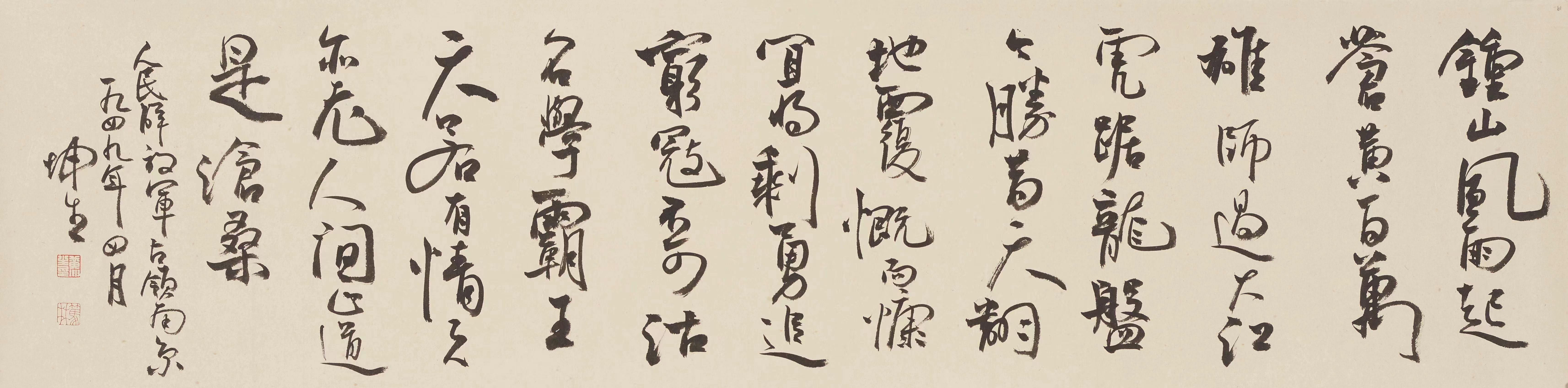 我對他的創作轉向充滿了敬佩。一位藝術家的成熟,不僅僅要看到書法的表現才華,還要看是否有越來越豐滿的書法表達。很多新生代的書法家在展覽中“曇花一現”,就是停滯于才華,依扙著展覽中獲獎,停滯于獲獎的樣式,沒有拓展自己的書法表達。黃坤生不是一個自我陶醉,滿足于原有創作成就的書法家。他清醒的自我反思,自我突破,貫穿他書法創作的重要線索。我隱約感知到他對過往創作并不滿意,幾乎不提早期的創作,由此感知到他對過往創作反思的深刻。他現在的大草巨制《沁園春?雪》、《李商隱詩》固然向我們傳遞了自我嬗變、自我涅槃的陣痛信息。歷時十余年錘煉與經典的辨析,近作《水仙花》、《夏日懷友》、《李白詩》等大草作品,體現了書法家在“大草技術”和“大草寫意”建構的朝向。他用堅實的技術通向寫意草書的精神,可以肯定他卓越的努力很有價值。盡管,對他作品的評價目前尚有分歧,在探索過程也存在多向性,甚至在“技術與風格”層面上與目前主流的朝向并不一致,但這些分歧不僅絲毫無損于作品本身的藝術光芒,而且恰恰是對其作品藝術價值的一種重視。因為,在這個時代,令人無話可說書法作品實在是太多了。在這個意義上,黃坤生在創作上默默的拓展,在行書與大草上的探索是值得特別的重視。黃坤生如何在原有的書寫經驗上,大膽的轉向,并且將自己的創作與審美理念一同更新,雅化了大草的精神,深化了表達的內蘊。隨著大草技術的融通,他把控大草節奏的能力也得到了淋漓盡致的展現,呈現出了動人的藝術力量。
