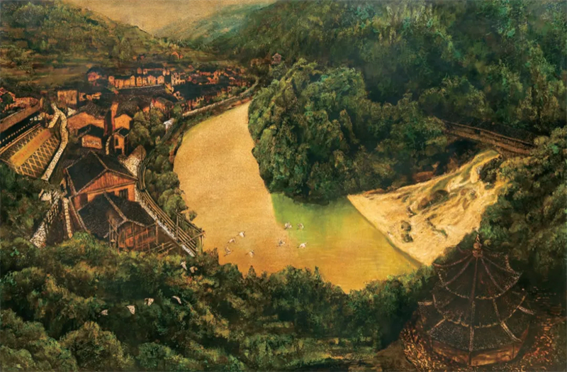 漆畫《下黨鄉韻悠長》通過生動的色彩和獨特的材質,展示下黨脫貧攻堅、生態保護和鄉村振興成果。