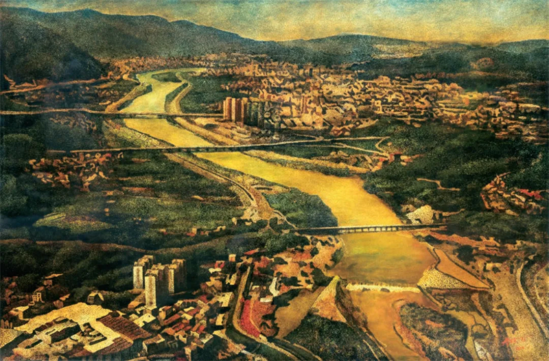 漆畫《平潭公鐵大橋》,以其獨特的藝術視角捕捉了平潭綜合實驗區的美好前景,象征著中國改革開放不斷探索、不斷深化的進程。