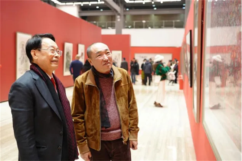 中國文學(xué)藝術(shù)界聯(lián)合會原黨組成員、副主席、書記處書記楊承志提前來到現(xiàn)場觀展,