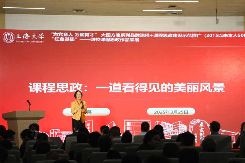 特約嘉賓上海大學(xué)教務(wù)部副部長(zhǎng)顧曉英教授作了主旨發(fā)言,顧曉英認(rèn)為,四校課程思政作品展是交流與融合的平臺(tái),可以通過(guò)共同開(kāi)發(fā)課程,打造聯(lián)合線上課程,各校學(xué)生合作完成大型的藝術(shù)作品,深化課程思政育人實(shí)效。她分享了“12344”課程思政建設(shè)體系的上大風(fēng)景,包括分層分類(lèi)-新思想點(diǎn)亮的專(zhuān)業(yè)教育育人風(fēng)景以及“紅色項(xiàng)鏈”-串聯(lián)高校黨史類(lèi)課程聯(lián)盟風(fēng)景的寶貴經(jīng)驗(yàn)。