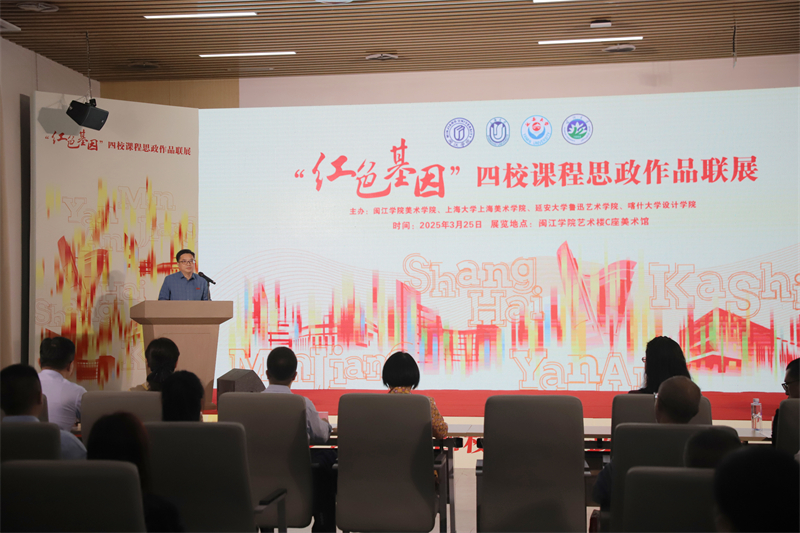 東南網(wǎng)藝術(shù)頻道3月26日訊(通訊員 張?chǎng)斡睿?月25日,“紅色基因——四校課程思政作品聯(lián)展”在閩江學(xué)院舉辦。本次活動(dòng)由閩江學(xué)院美術(shù)學(xué)院、上海大學(xué)上海美術(shù)學(xué)院、延安大學(xué)魯迅藝術(shù)學(xué)院、喀什大學(xué)設(shè)計(jì)學(xué)院聯(lián)合主辦。閩江學(xué)院黨委常委、副校長(zhǎng)陳興明蒞臨開(kāi)幕式致辭,校黨委宣傳部部長(zhǎng)戴少娟、團(tuán)委書(shū)記王艷婷、教務(wù)處處長(zhǎng)何偉、新聞傳播學(xué)院黨委書(shū)記陳國(guó)岱,相關(guān)主辦高校嘉賓及閩江學(xué)院美術(shù)學(xué)院師生代表200余人出席開(kāi)幕式。開(kāi)幕式由閩江學(xué)院美術(shù)學(xué)院黨委副書(shū)記張萬(wàn)輝主持。