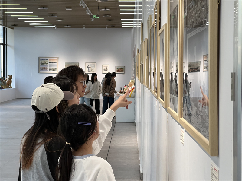 漫步展廳,閩江學(xué)院的《閩山閩水物華新 美麗鄉(xiāng)村繪新篇》以彩色畫(huà)卷展現(xiàn)鄉(xiāng)村振興的壯美圖景;上海大學(xué)以《黃河?xùn)|渡遺址》作為專(zhuān)門(mén)課程任務(wù),突出紅色文化教育,增強(qiáng)文化自信;延安大學(xué)的《紅色木刻版畫(huà)創(chuàng)作實(shí)踐》再現(xiàn)革命年代的崢嶸歲月;喀什大學(xué)的《邊疆建設(shè)主題設(shè)計(jì)》則通過(guò)現(xiàn)代設(shè)計(jì)語(yǔ)言詮釋民族團(tuán)結(jié)與邊疆發(fā)展的時(shí)代主題。“原來(lái)思政課可以如此鮮活——當(dāng)畫(huà)筆遇見(jiàn)信仰,執(zhí)奮斗之‘筆’,繪就強(qiáng)國(guó)有我的‘擔(dān)當(dāng)畫(huà)卷’,青春才會(huì)閃光”,前來(lái)參觀的“00后”大學(xué)生馮世通在木刻作品《紅色延安》前感慨道。