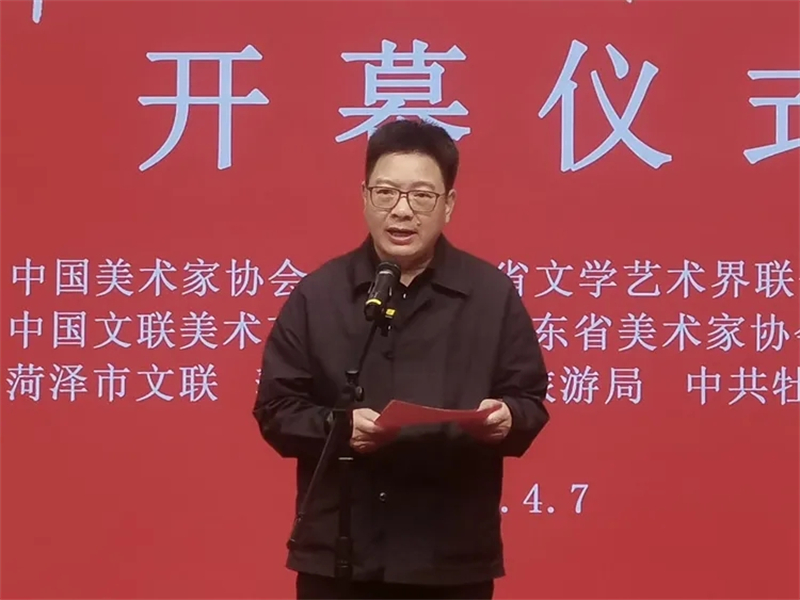 出席開幕式的有中國文聯原黨組成員、副主席楊承志,中國美術家協會分黨組成員、秘書長王平,山東省文聯黨組成員、副主席姜慧,陜西省美術家協會原主席、西安美術學院原院長郭線廬,山東省美協常務副主席、秘書長張宜,中國美協理論委員會副主任、中國藝術研究院研究員李一,菏澤市委副書記、市長李春英,菏澤市人大常委會主任王磊,菏澤市政協主席王衛東,菏澤市委常委、組織部部長王軍,菏澤市人民政府副市長張鵬,中國美術家協會原黨組成員、副秘書長、菏澤市李榮海美術館終身名譽館長李榮海,菏澤市人大常委會原副主任丁志剛,中國文聯美術藝術中心展覽處處長杜松儒等嘉賓,以及入選作者代表,來自全國各地的藝術家、美術理論家,美術愛好者和媒體朋友們出席開幕式。中國文聯原黨組成員、副主席楊承志宣布展覽開幕,菏澤市委常委、組織部部長王軍主持開幕式。