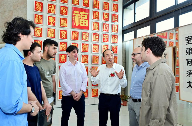 陳吉老師與外籍師生分享書(shū)法精妙 福州大學(xué)供圖