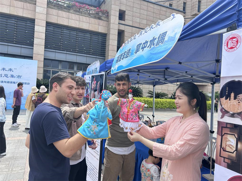 大學(xué)生創(chuàng)意集市現(xiàn)場(chǎng),十位非遺傳承人攜書(shū)法、茉莉花茶窨制工藝、浦城剪紙、泉州南派布袋戲、建窯建盞制作技藝、壽山石雕、福州脫胎漆器髤飾技藝、軟木畫(huà)和紙上漂漆等八閩瑰寶進(jìn)行技藝展演。13個(gè)校內(nèi)社團(tuán)也積極參與大學(xué)生閱讀創(chuàng)意市集,共同推動(dòng)非物質(zhì)文化的傳承與保護(hù)。