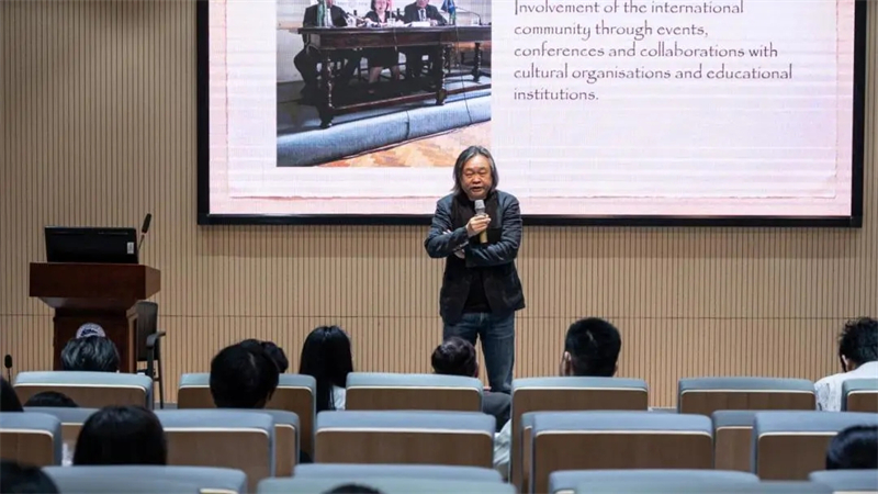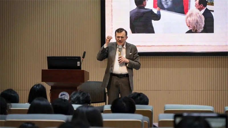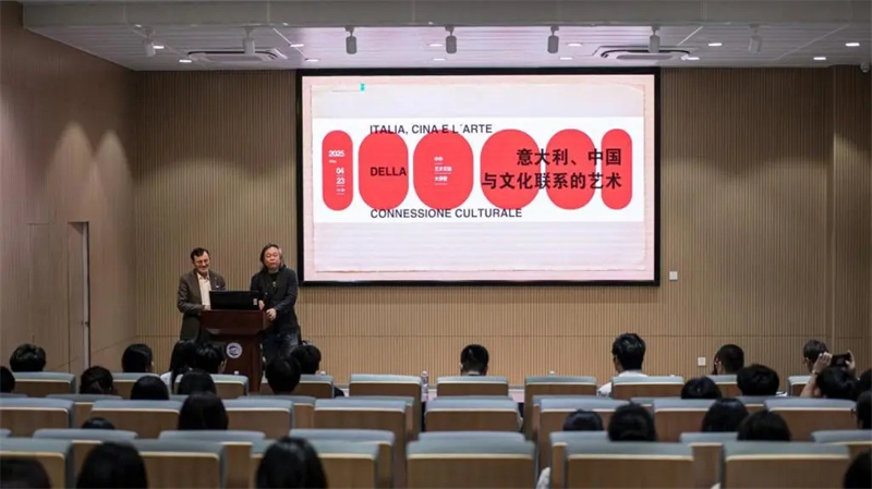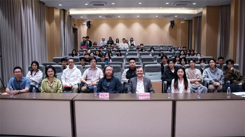 接著,薩巴蒂尼教授在106學術報告廳作主題為“意大利、中國與文化聯系的藝術”學術講座。薩巴蒂尼教授以其豐富的學術背景和多國文化工作經驗,深入闡釋了意大利與中國在歷史、藝術、美學理念等方面的文化聯系。他從文藝復興時期的藝術影響談到中國傳統繪畫的哲思結構,并結合自身參與多項中意文化交流項目的經歷,生動展現了中西文化在藝術表達方式與審美精神上的異同與互鑒。講座內容兼具深度與廣度,語言幽默而富有哲理,引發了在場師生的廣泛共鳴。在互動環節,師生們踴躍提問,薩巴蒂尼教授一一耐心解答,并鼓勵青年藝術學子積極參與國際藝術交流,用藝術語言講述中國故事。