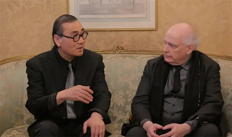 劉萬鳴院長與法蘭西學院藝術院院士、終身秘書長洛朗·珀蒂吉爾交談