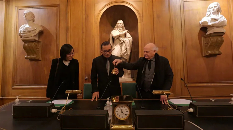 洛朗·珀蒂吉爾首先帶領訪問團參觀了法蘭西學院,并詳細介紹了這座學院的歷史沿革與工作機制。隨后雙方開展了親切務實的座談。