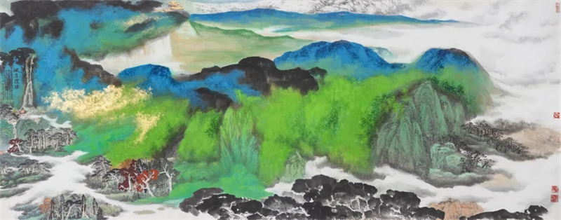 五十當知天命,選擇青綠山水傳統作為努力方向,又有遠游世界之旅,漸漸形成融合東西探索的作品,曾在亞洲、歐洲、美洲各地展覽,有了一些領會,現在挑出百幅作品,回報祖國、回報鄉親。
