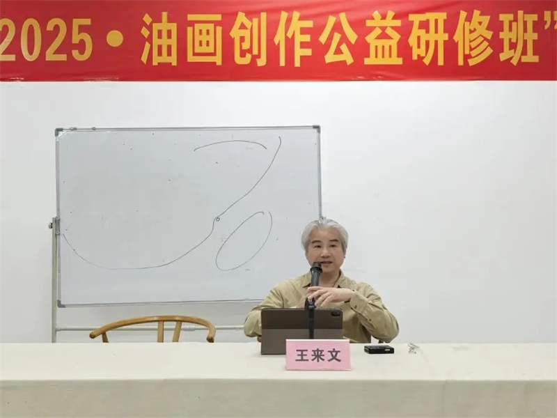 在研修期間,中國美協副主席、福建省美協主席王來文與學員們分享了創辦公益研修班的初心。他精準地總結出福建油畫“福建綠、閩南紅”的獨特色彩特色,以及“閩人尚線”的總體藝術特征。同時,針對當下油畫創作現狀,王來文主席提出了諸多具有建設性的思考:寫生要注重質量和內涵,避免盲目跟風;創新過程中要堅守油畫本體語言,防止作品流于表面;探索寫意油畫需深入挖掘中國傳統文化精神;創作時應拓寬視野,善于從生活中提煉和升華素材;倡導“德藝雙修”,為學員們的藝術道路指明了方向。