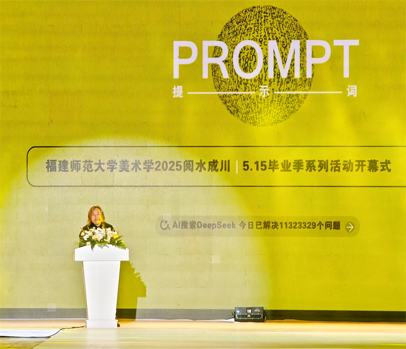開幕式上,羅禮平代表美術學院致辭,對蒞臨現場的領導嘉賓和支持學院發展的各界人士表示衷心的感謝。本屆畢業季活動以“提示詞”為主題,羅禮平院長強調,面對AI技術浪潮,真正的藝術創作應堅守人類情感的鮮活流淌、思想的深度沉淀與精神的永恒追求。他寄語畢業生,在現實與虛擬交織的廣闊天地中,要以敏銳的藝術觸覺、深厚的人文底蘊,探尋屬于自己的藝術新境,繪就未來的精彩畫卷。