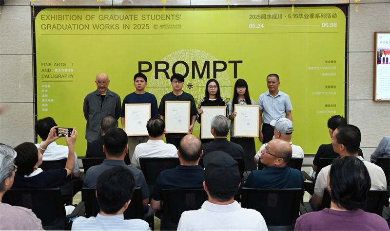 東南網藝術頻道訊(傅心婕 周智軍 馮韻 通訊員 王龍飛)5月24日上午,2025年閱水成川?提示詞——“5?15”畢業季美術與書法優秀作品展開幕式暨“福緣獎”頒發儀式在福建省畫院舉行。