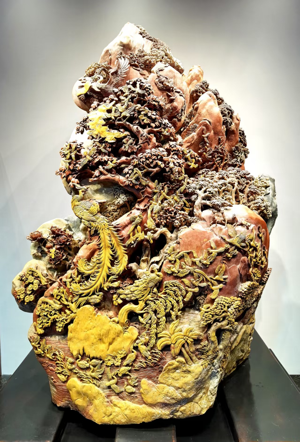 針對當下機雕技術的普及,福建省工藝美術大師陳為新提出了深刻見解。他坦言,機雕雖效率極高,但易陷入預設程序的桎梏,導致作品線條僵硬、題材形制同質化,缺乏對天然石材肌理的靈動應對與對人類情感的細膩捕捉。“俏色巧雕需‘因色取巧,邊刻邊構思’,依賴雕刻師的預判力與即興創造力,這是機器無法模擬的。”他強調,好的工藝美術作品具備多樣性,離不開手工創作,手工創作既是技藝呈現,也是不可替代的文化敘事載體。