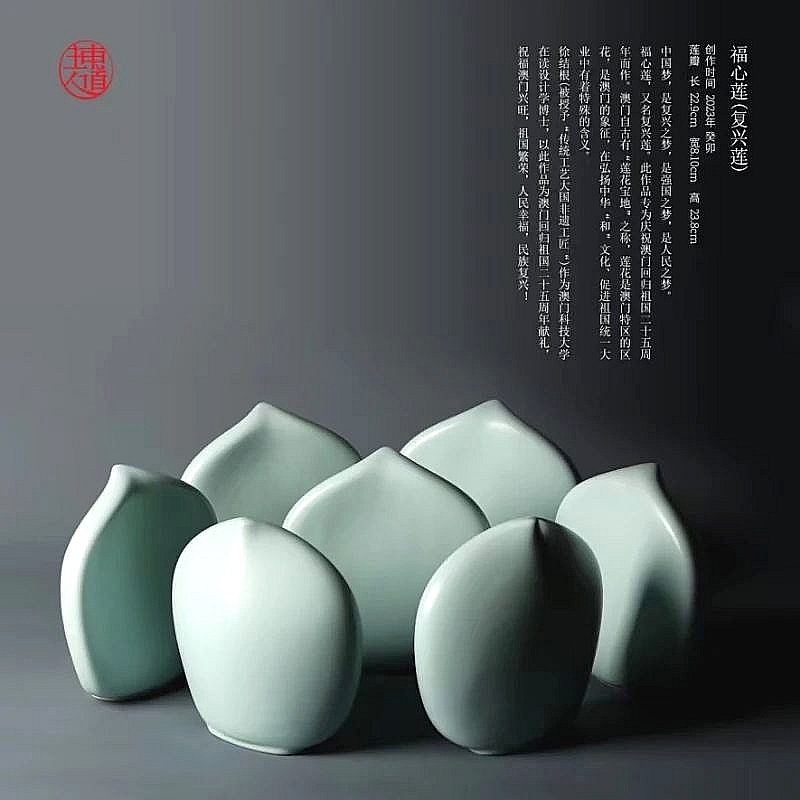 廣東省工藝美術大師徐結根展出了《聽 觀照》等一系列汝窯作品,釉質溫潤如玉,呈現出獨特的“單色”美感。這些汝窯工藝體現了傳統工藝“守正創新”的思路,在守住天青釉色與極簡美學等核心技藝和文化基因的基礎上,融入現代生活場景。徐結根表示,“作品在茶器、酒具等設計中,以傳統為根,通過設計語言和功能革新,讓老手藝兼具東方韻味與現代實用性,贏得年輕人喜愛。”