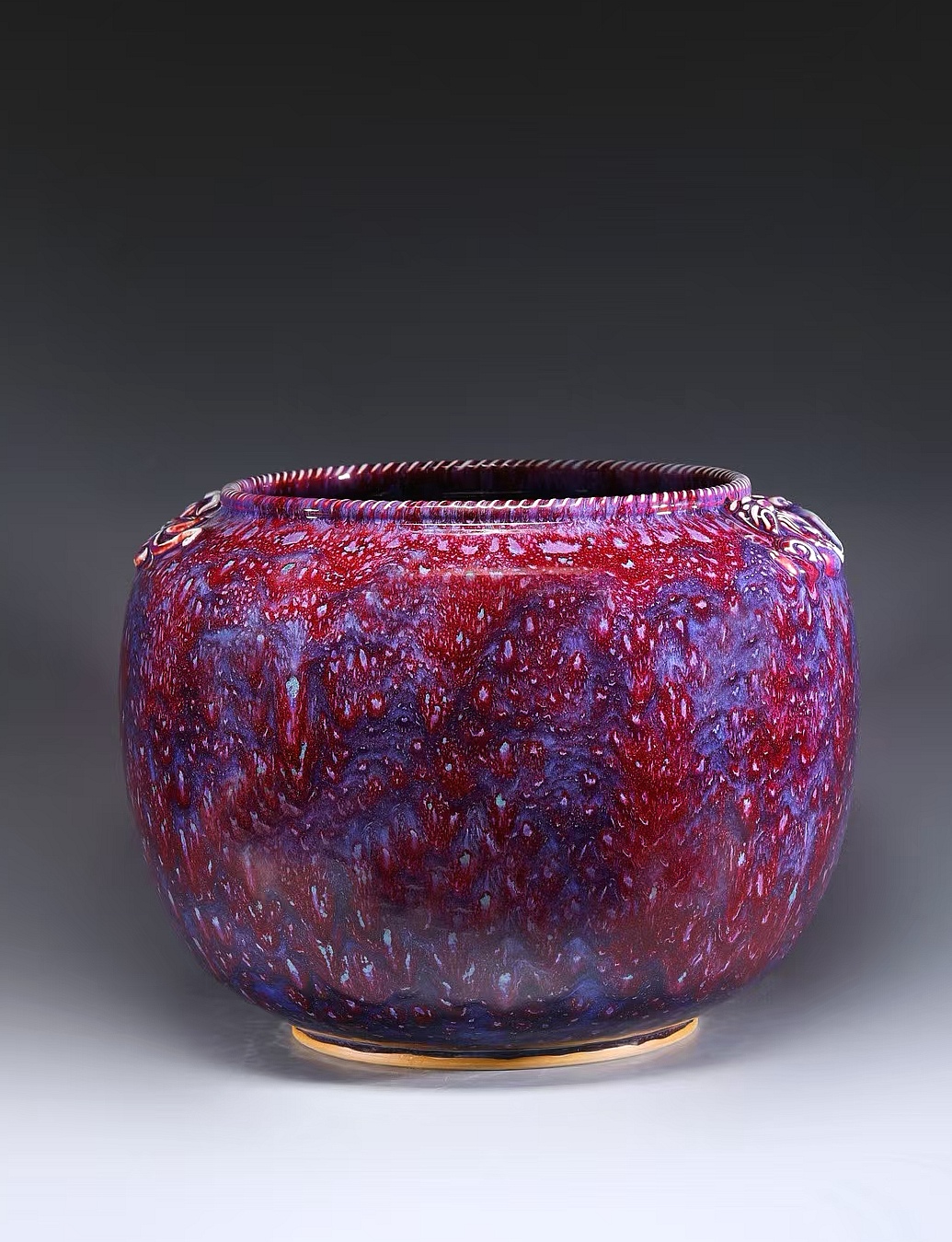 河南省工藝美術大師劉紅生攜鈞窯力作《盛世饕餮畫缸》參展。這件作品集嚴謹的工藝架構、獨特的裝飾語言和震撼的釉色表現于一體,既承載著商周青銅文明的古韻,又折射出現代藝術審美的價值。劉紅生表示:“鈞窯作為宋代五大名窯之一,以海棠紅、玫瑰紅、茄皮紫、天青月白等豐富窯變釉色著稱。此次展示的饕餮紋畫缸,融合鼓形主體與玉璧元素,結合現代審美,呈現新的視覺體驗。”
