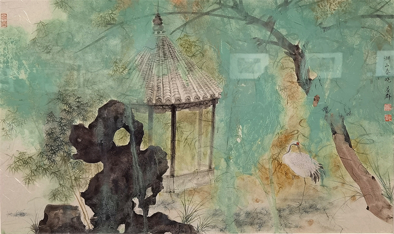 程偉杰《南潯古鎮(zhèn)太湖石(五)白頸長尾雉》