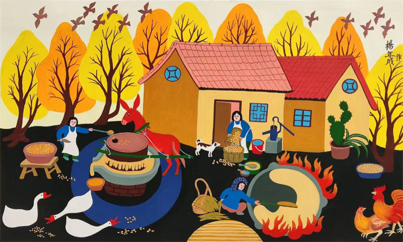 農(nóng)民畫不僅是一種重要的民間藝術(shù)形式,更是當下鄉(xiāng)村振興中的特色文化資源,一大批以“畫鄉(xiāng)”為核心的地方特色文化產(chǎn)業(yè),已經(jīng)成為帶動鄉(xiāng)村旅游、促進農(nóng)民增收致富、助力鄉(xiāng)村振興的重要途徑。全國農(nóng)民畫正以更具時代性的藝術(shù)表達和傳播方式,繼續(xù)講述著中國農(nóng)村的故事,傳遞著鄉(xiāng)村振興的時代最強音。