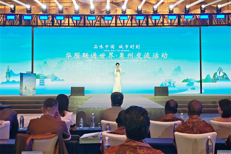 東南網7月7日報道(傅心婕 馮韻 陳培源 李奇 陳淼淼 周智軍)7月6日,“品味中國 城市時刻”系列活動“華服聯通世界?泉州交流活動暨首屆華服文化全球行啟動儀式”在福建泉州舉行。中國民間組織國際交流促進會副秘書長王珂、福建省人民政府外事辦公室副主任黃劭蓉、泉州市商務局局長張小紅、福建師范大學美術學院院長羅禮平、泉州市委社會工作部副部長連潔等領導出席會議,來自22個國家的外國嘉賓與國內知名企業家、文化界人士等近200人出席啟動儀式,以華服為文化紐帶,共商文明交流互鑒之路,搭建經貿橋梁,助力企業海外拓展與發展,推動中華優秀傳統文化走向世界舞臺。