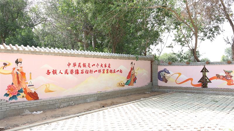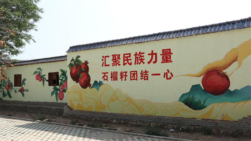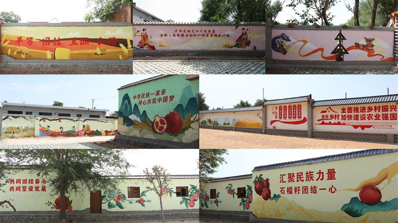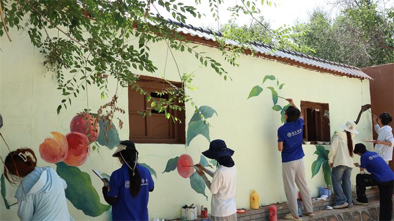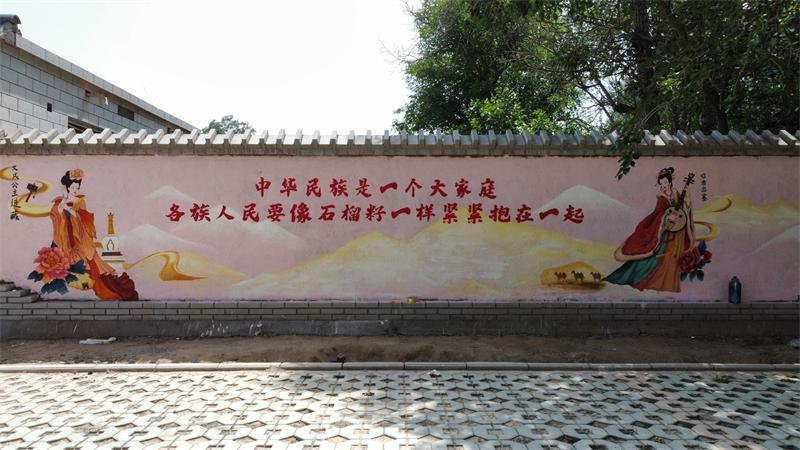 曬場的麥粒與墻上的金穗同樣燦爛,閩江學(xué)院美術(shù)學(xué)院學(xué)子們用丙烯顏料描繪的不只是美的圖案,更是一場跨越時空的對話——當(dāng)昭君琵琶遇見現(xiàn)代畫刷,當(dāng)文成公主的嫁妝箱里的瓜果種子變成今日的“花果經(jīng)濟”,民族團結(jié)與鄉(xiāng)村振興的故事,在這些沾滿顏料的年輕手掌里,正以他們的溫度續(xù)寫著新的篇章。