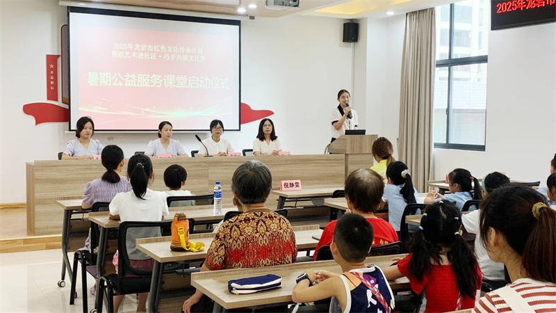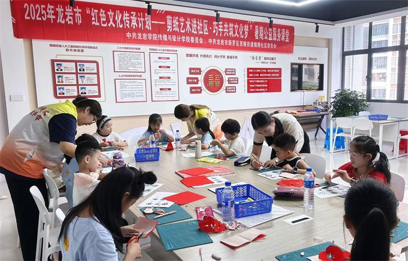 東南網藝術頻道訊(通訊員 朱荔婷)7月31日,龍巖學院傳播與設計學院“紅土傳承·非遺煥新”實踐隊赴新羅區西陂街道錦繡社區開展為期15天的“紅色文化傳承計劃—— 剪紙藝術進社區·巧手共筑文化夢 ”社會實踐活動啟動儀式。傳播與設計學院黨委書記郭曉云,黨委副書記饒進,錦繡社區黨委書記陳海艷,傳播與設計學院副教授、暑期社會實踐指導老師朱荔婷,來自社區的學員、家長及實踐隊志愿者共計50余人出席了此次活動。