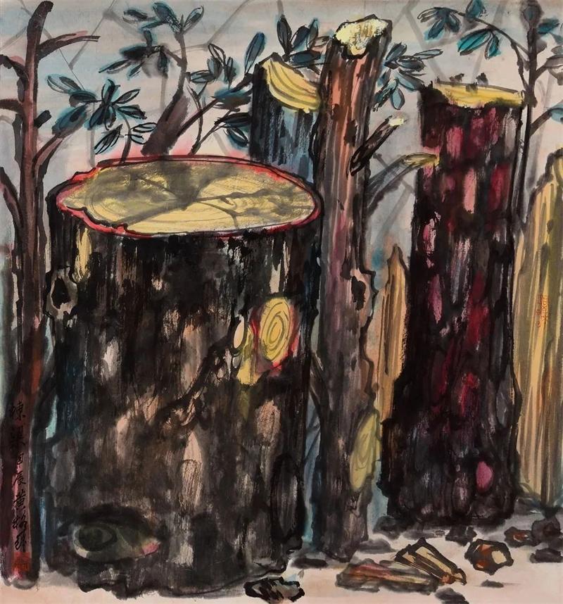 ▲《山林木—棟梁》 黃格鋒(清華大學) 紙本設色 48.5 x 48.5 cm
