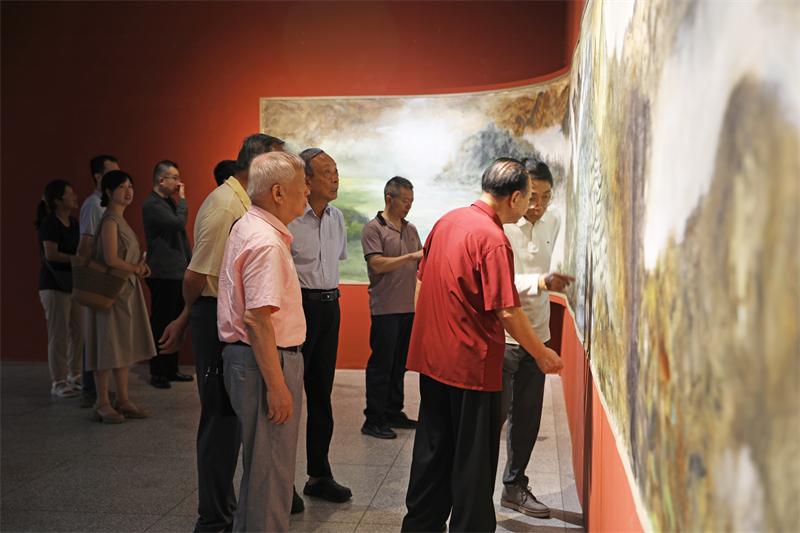 此次展覽展出印尼融僑馬永強(qiáng)創(chuàng)作的多幅藝術(shù)作品。展覽主題‘紫氣東來’既象征祥瑞,也寓意文明東傳西漸的軌跡。此次展出的20米巨幅長卷《萬古江山懷古韻》與《錦繡山河》以宏大的尺度和磅礴的氣勢展現(xiàn)了自然與人文的和諧之美,讓觀者仿佛置身于山水意境之中,領(lǐng)略山河壯麗,體悟文脈悠遠(yuǎn),為觀者帶來了一場視覺與心靈的雙重盛宴。展覽作品不僅展現(xiàn)了馬永強(qiáng)先生在藝術(shù)上的卓越成就,更傳遞了他對中印尼文化交融的深刻理解和美好愿景,是中印尼兩國人民友誼的見證。