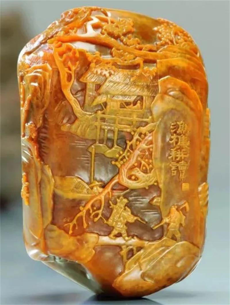 《漁樵耕讀》薄意隨形擺件全方位展現了林文舉大師獨樹一幟的雕刻風格與精湛技藝。
