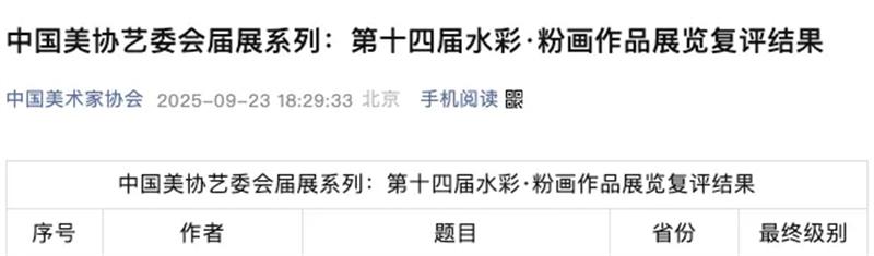 2025年9月23日,由中國美術家協會、黑龍江省文學藝術界聯合會主辦的“中國美協藝委會屆展系列:第十四屆水彩·粉畫作品展”復評結果出爐。我院名譽院長孫志純作品《高峰》入選。