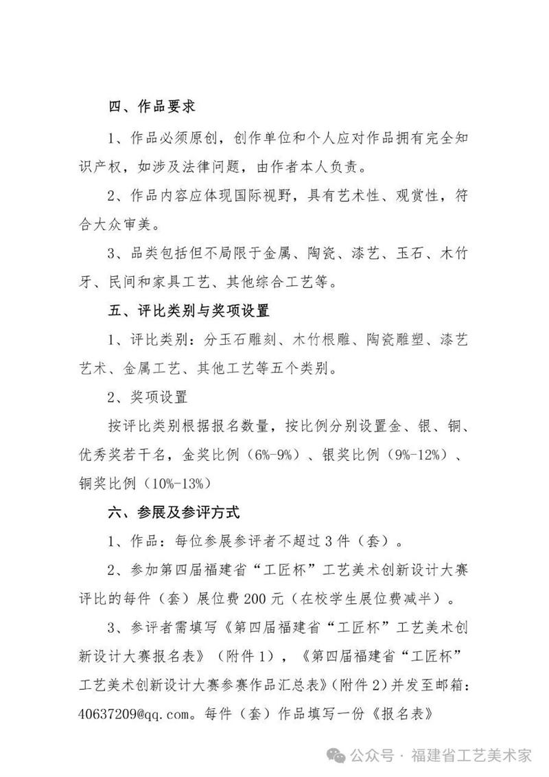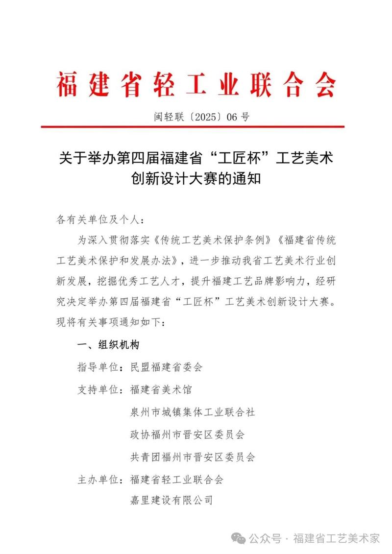 關于舉辦第四屆福建省 “工匠杯”工藝美術創新設計大賽的通知