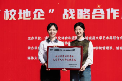 戰略合作啟動儀式上,福建師范大學協和學院管理學系黨總支書記蘇秋紅與浦城剪紙國家級代表性傳承人周冬梅共同簽署合作協議。同時授予浦城縣巧剪文化傳播有限公司“數字非遺實訓基地”“文化育人創新實踐基地”牌匾,標志著“校地企”三方合作,非遺運營人才培養與產業轉化平臺的正式落地。