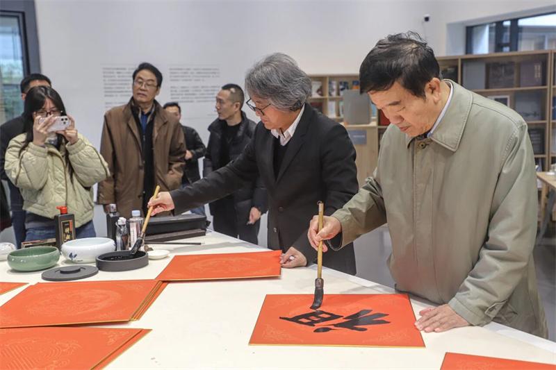 參觀結束后,蘇士澍先生及隨行藝術家來到美育圖書館,應邀即興創作,他與藝術家們相繼為美術館題字送“福”,并捐贈其書法作品。這些墨寶將被美術館妥善珍藏,助力傳統文化的傳承與傳播。