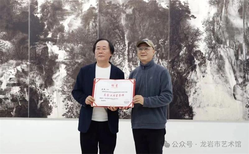 龍巖市藝術館館長張錦華向梁明頒發名家工作室導師證書