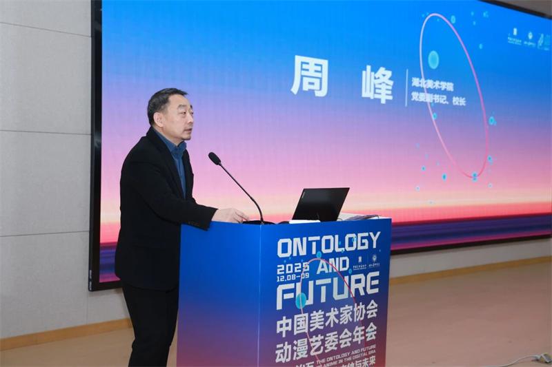 湖北美術學院黨委副書記、校長周峰出席會議,他結合湖北美術學院百年學脈與美育傳承,勉勵藝委會動漫藝術工作者增強時代責任感與前行信心。