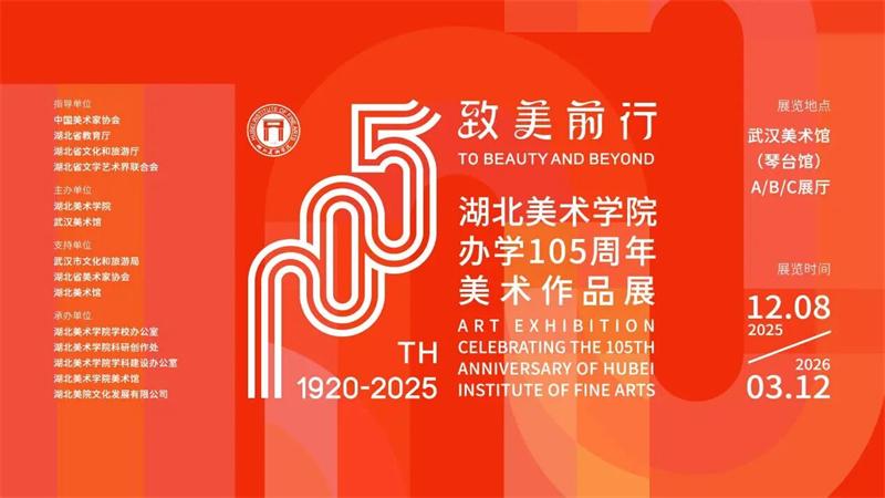 2025年12月9日,由中國美術家協會、湖北省教育廳、湖北省文化和旅游廳、湖北省文學藝術界聯合會指導,湖北美術學院、武漢美術館主辦的“致美前行——湖北美術學院辦學105周年美術作品展”在武漢美術館(琴臺館)開幕。展覽展出了湖北美術學院辦學105年來部分師生的400余件作品,彰顯了湖北美術學院“為時代畫像、為時代立傳、為時代明德”的藝術傳統。