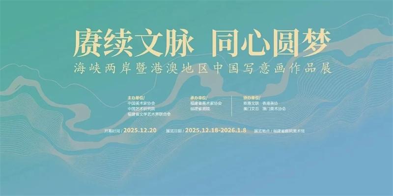 歲末冬深,藝苑春濃。2025年12月20日,由中國美術家協會、中國藝術研究院、福建省文學藝術界聯合會共同主辦的“賡續文脈 同心圓夢——海峽兩岸暨港澳地區中國寫意畫作品展覽”在福建省畫院開幕。展覽由福建省美術家協會、福建省畫院承辦,香港文聯、香港美協、澳門文總、澳門美術協會協辦,共展出來自祖國內地及香港、澳門、臺灣地區中國寫意畫作品近百件。此次展覽在即將迎來“十四五”規劃收官,“十五五”規劃開啟之際舉辦,既是對黨的二十屆四中全會精神和習近平文化思想的深入踐行,又是海峽兩岸暨港澳地區美術界攜手傳承中華文脈的生動實踐。